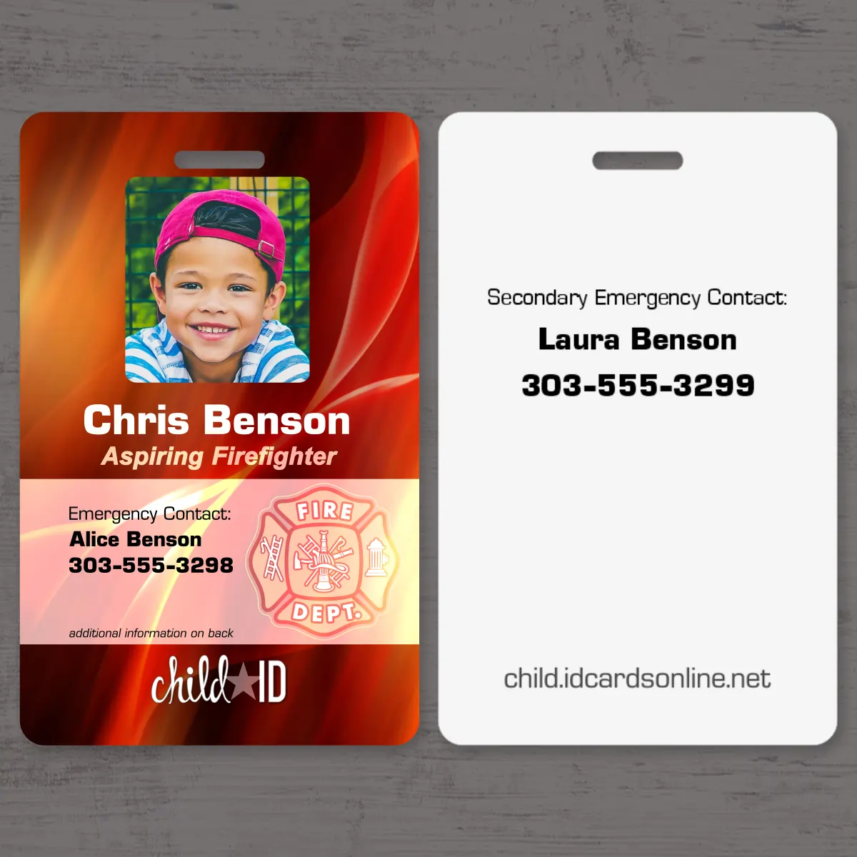 Firefighter Child ID Card – PVC ID with Slot Punch